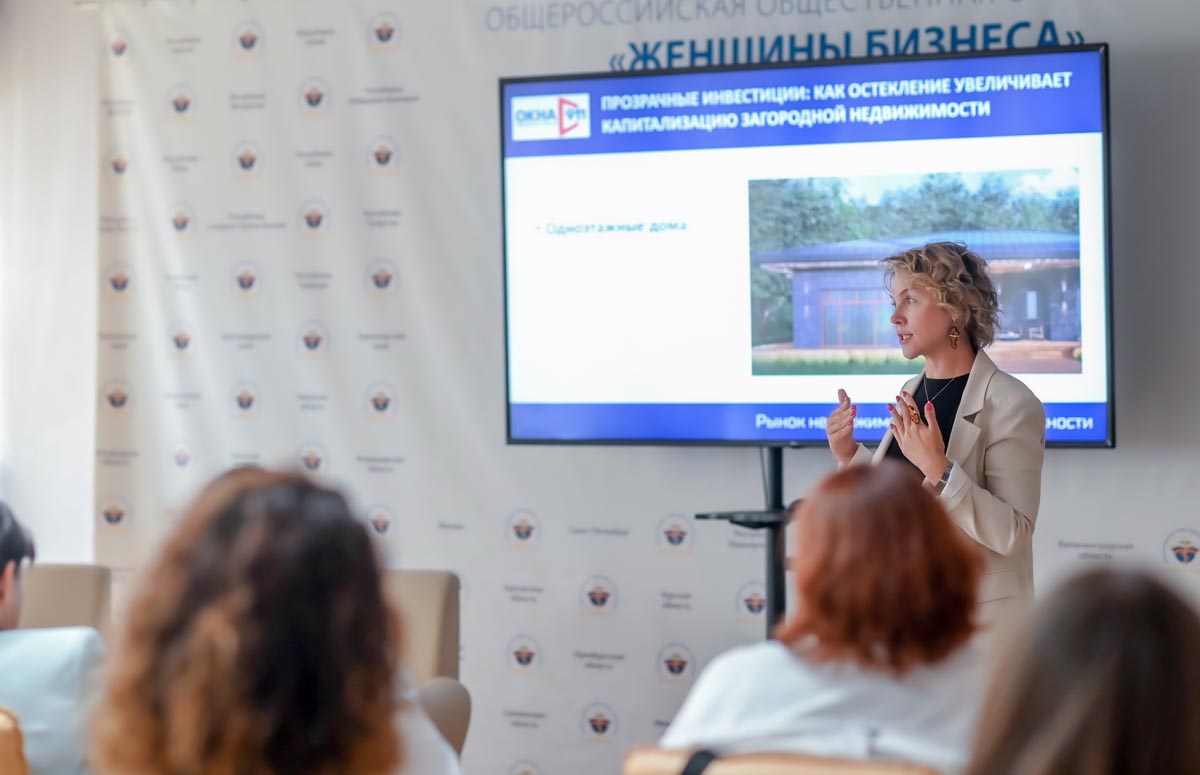 • Екатерина Авсатова, директор по развитию ОКНА911, выступила с темой «Прозрачные инвестиции» — о том, как остекление и правильный выбор систем повышают ценность загородных домов.