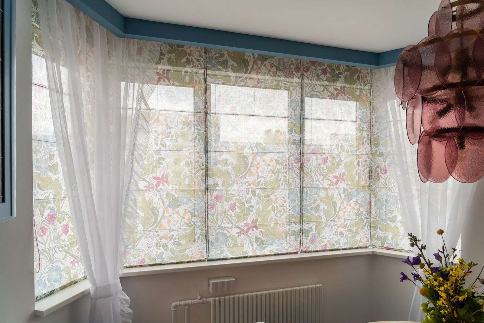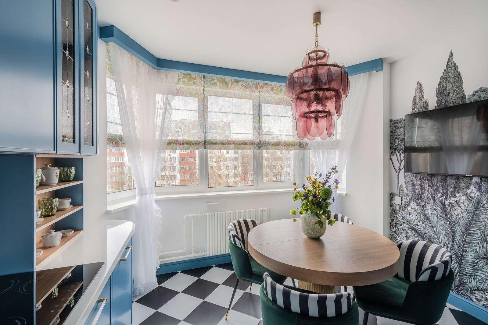 Главная особенность этой кухни — эркер. Это очень красивое архитектурное решение, которое делает пространство выразительным и наполненным воздухом. Но с технической точки зрения эркерное остекление требует особой точности: каждая конструкция устанавливается под своим углом, и здесь особенно важны грамотный расчёт, аккуратный замер и профессиональный монтаж.